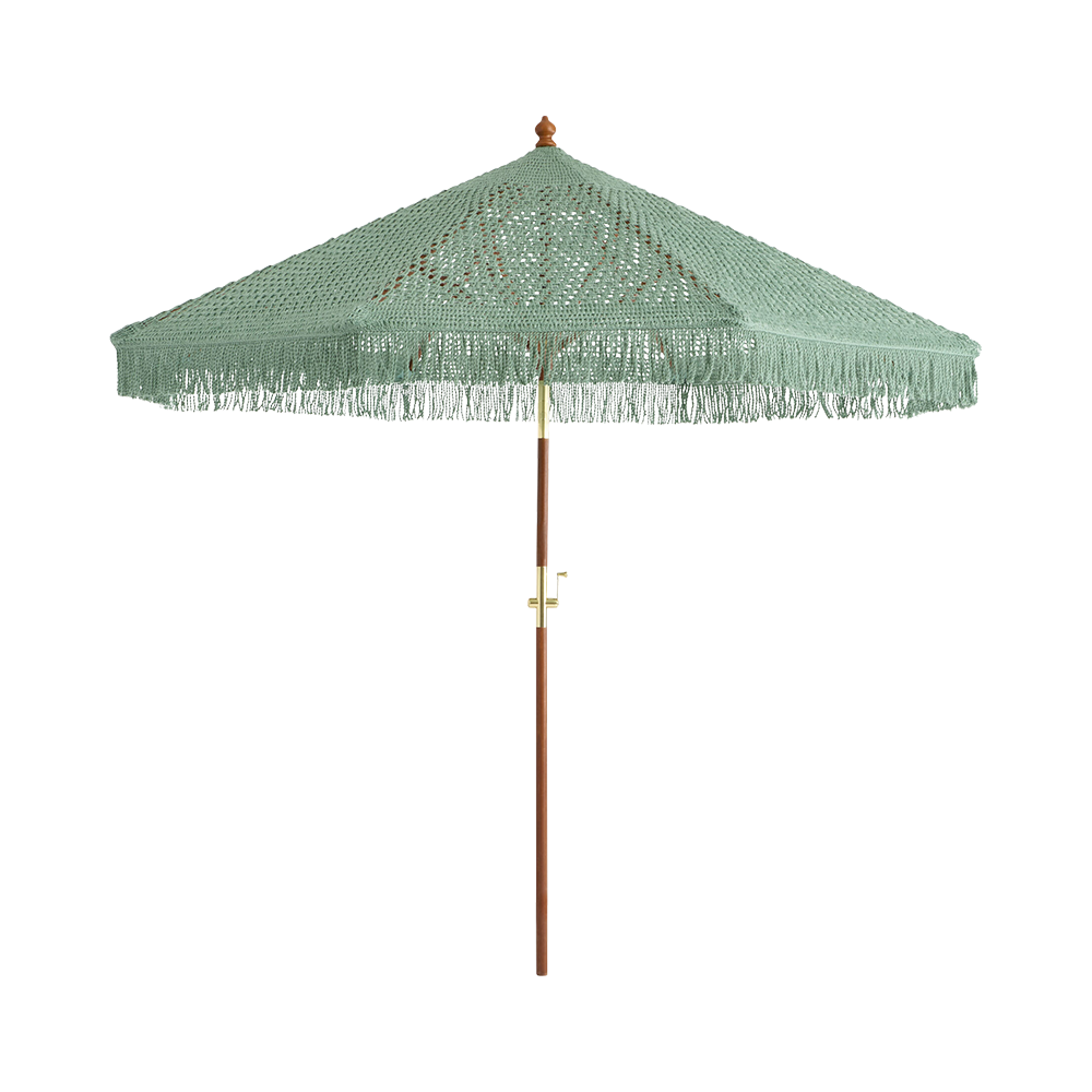 9ft Sage Macrame Fringe Umbrella