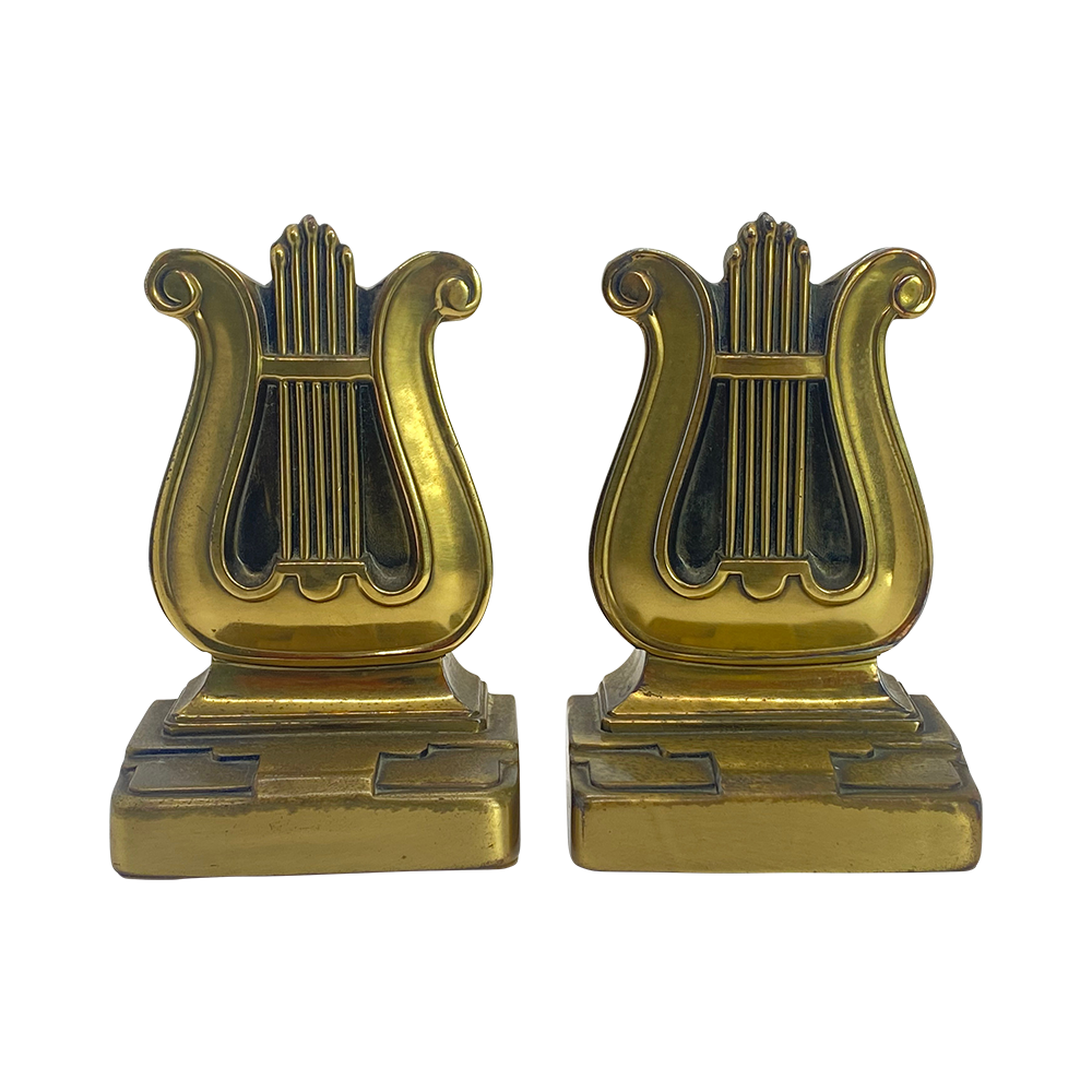 Brass Lyre Bookends