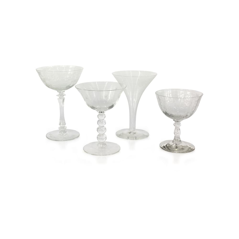 Clear Etched Champagne Coupes