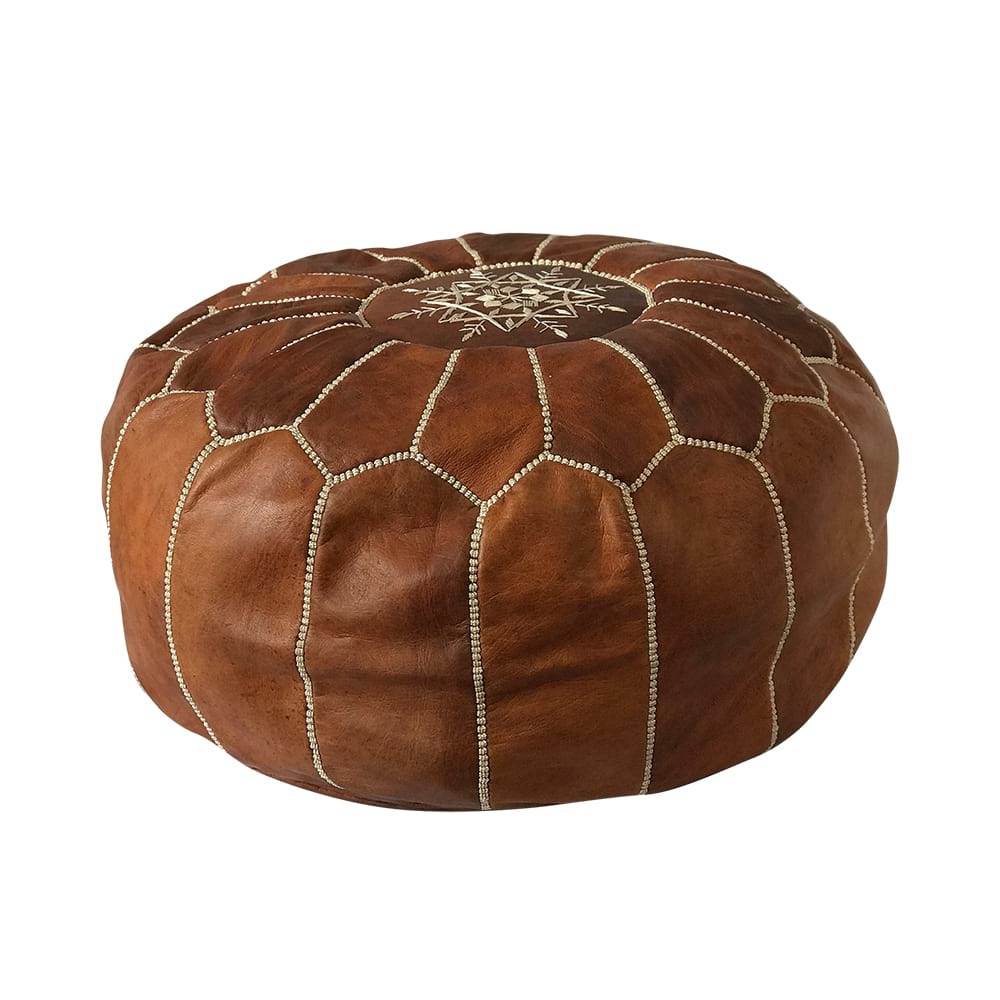Morrocan Brown Leather Pouf